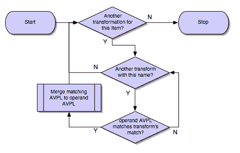 Data AVPLs can be operated against configuration AVPLs in various ways: